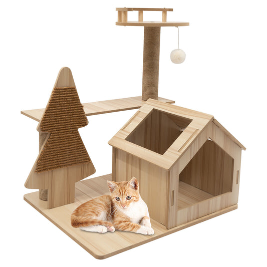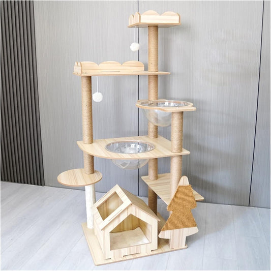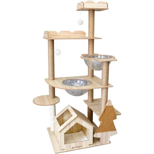 מתקן גירוד מעוצב מעץ לחתולים בעל 5 קומות
