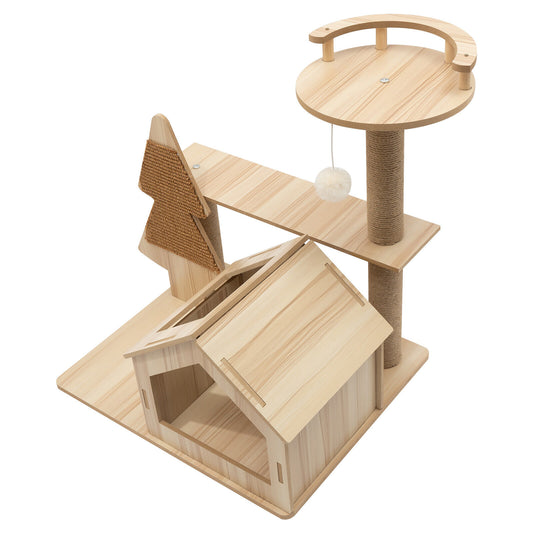מתקן גירוד מעוצב מעץ לחתולים בעל 4 קומות