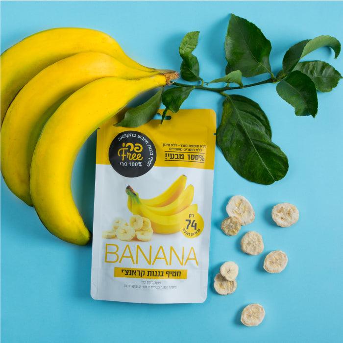 חטיף קראנצ׳י מיובש בהקפאה טעים ובריא 100% פרי. השקית מכילה 74 קלוריות בלבד.