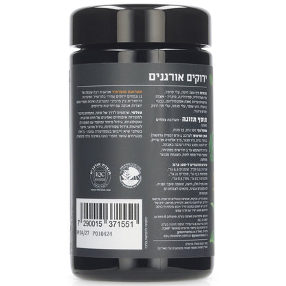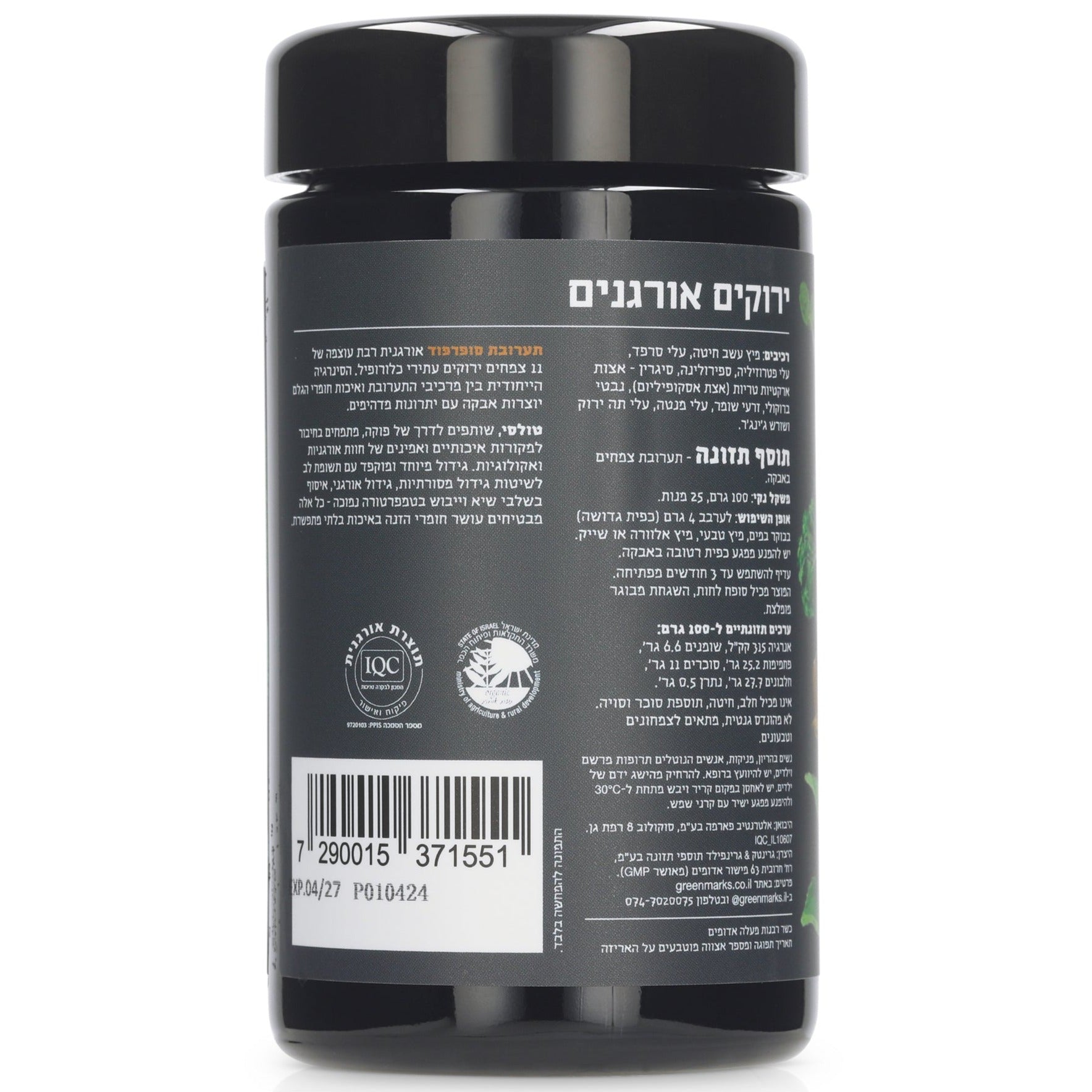 תערובת רבת עוצמה של ירוקים עשירים בכלורופיל שכוללת סרפד, מיץ עשב חיטה, מיץ עשב שעורה, פטרוזיליה, אצות ים, נבטי קייל ועוד.