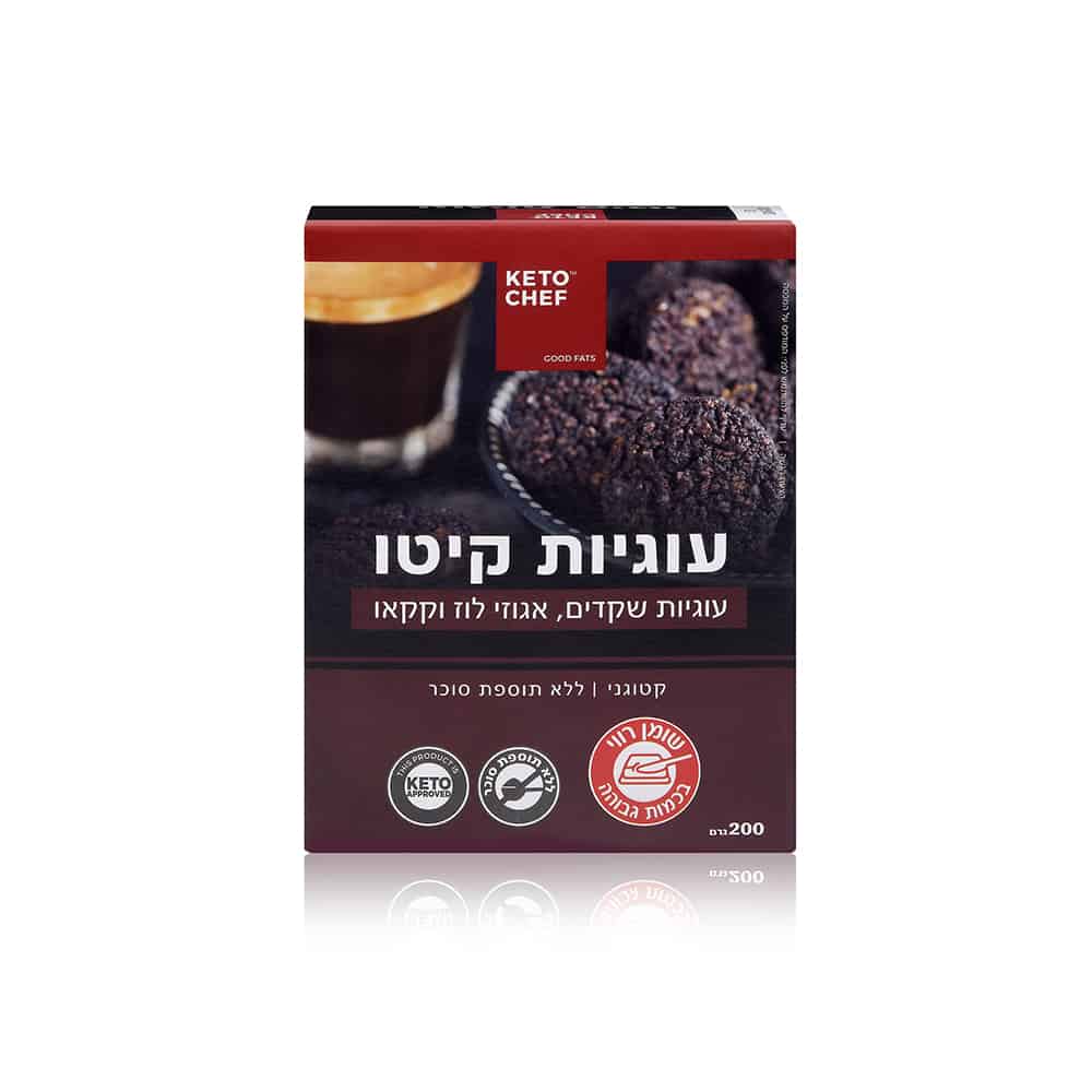 אנו גאים להציג טעם נוסף בסדרת העוגיות הקטוגניות, על בסיס קמח שקדים, חמאת אגוזי לוז וקקאו בשילוב ממתיק המונק פרוט הטבעי. KETO CHOC COOKIES - עשירה בשומן רווי (13.1 גר’ ל- 100 גר’) ודלה מאוד בפחמימה (4.5 גר’ ל- 3 עוגיות ורק 1.6 גר’ ל- 3 עוגיות בניקוי רב כהליים).