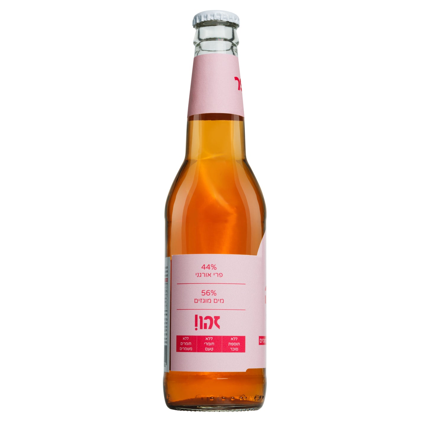 רכיבים: מים, מיץ תפוחים אורגני עשוי מרכז, מיץ פטל אורגני, מיץ תפוחים אורגני, פחמן דו חמצני, מיצוי צמחי לצביעה - רכז גזר שחור אורגני.